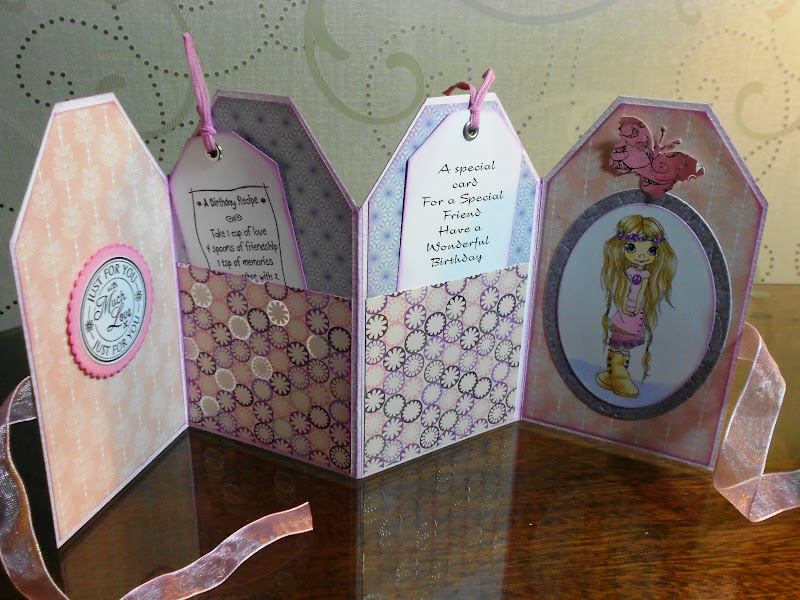 picture overload......sorry but I wanted to show all the aspects of this card. It was a commission for a special friend card and it had to be different from all the designs I had done before, simply because I've made cards for this lady quite a few times. I'm delighted to say she loved it....phew!!!